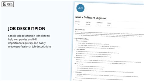 The job description template is designed to help companies and human resources departments create professional job descriptions in a quick and easy way. Get instant access to this free job description template. | discover new ways to use notion across work and life.
